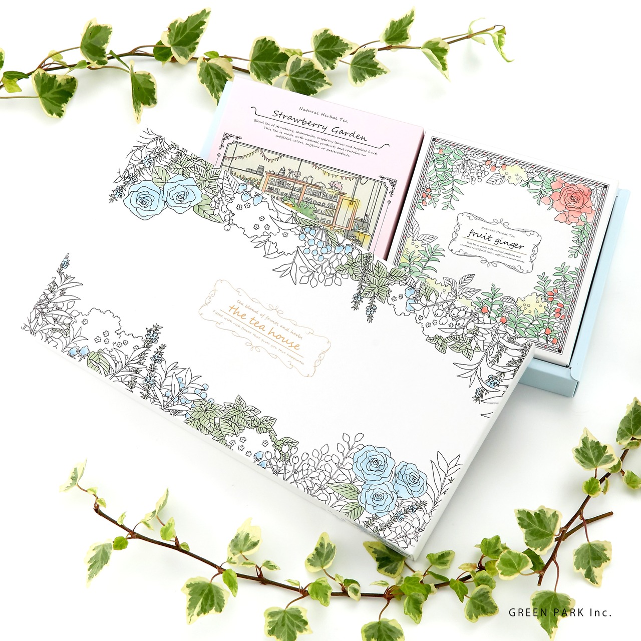 グリーンパークオリジナルのボタニカルモチーフのギフトボックスにセットしました。